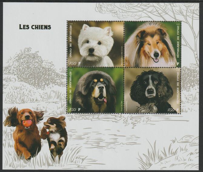 Congo 2019 Dogs perf sheet containing four values unmounted mint