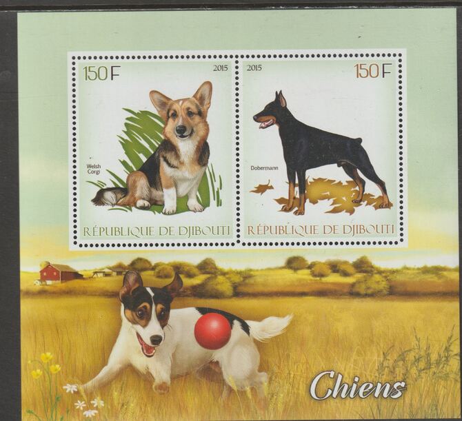 Djibouti 2015 Dogs perf sheet containing two values unmounted mint
