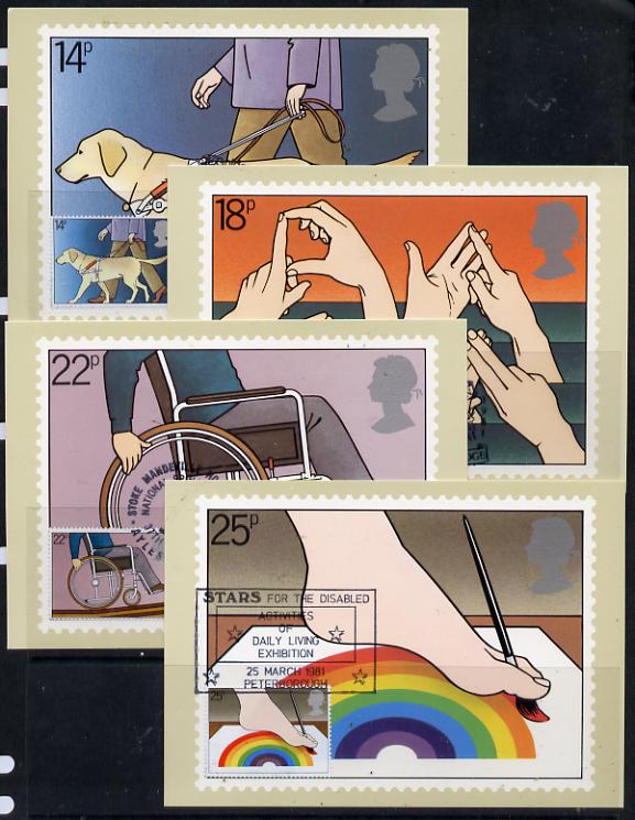 Great Britain 1981 International Year of the Disabled set of 4 PHQ cards with appropriate stamps each very fine used with first day cancels