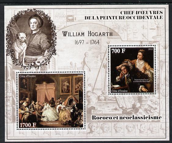 Ivory Coast 2013 Art Masterpieces from the Western World - Rococo & Neoclassicism - William Hogarth perf sheetlet containing 2 values unmounted mint
