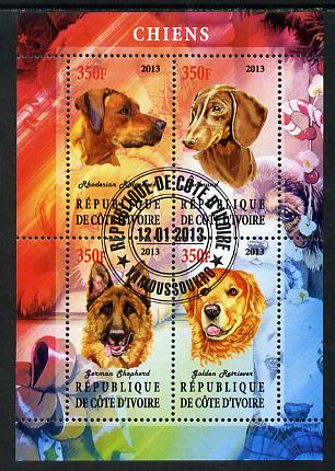 Ivory Coast 2013 Dogs #1 perf sheetlet containing 4 values fine cto used