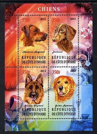 Ivory Coast 2013 Dogs #1 perf sheetlet containing 4 values unmounted mint