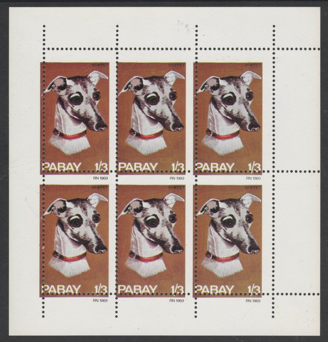 Pabay 1969 Dogs 1s3d (Whippet) complete perf sheetlet of 6 with perforations misplaced both horizontally and vertically, unmounted mint