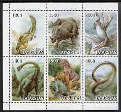 Tatarstan Republic 1997 Dinosaurs #1 perf sheetlet containing complete set of 6 values unmounted mint (straight edge at right)