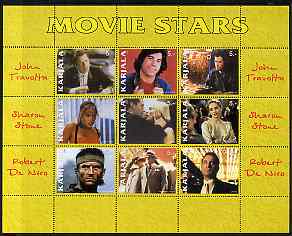 Karjala Republic 1999 Movie Stars perf sheetlet containing 9 values (John Travolta, Sharon Stone & Robert De Niro) unmounted mint