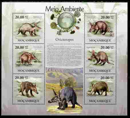 Mozambique 2010 The Environment - Aardvarks large perf sheetlet containing 6 vaues unmounted mint Michel 3578-83