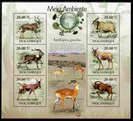Mozambique 2010 The Environment - Antelopes & Gazelles large perf sheetlet containing 6 vaues unmounted mint Michel 3554-59