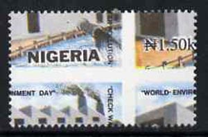 Nigeria 1993 World Environment Day 1n50 Water Polution with vert & horiz perfs misplaced, divided along perfs to show portions of 4 stamps unmounted mint, SG 657var*