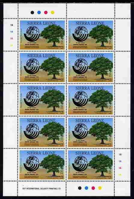 Sierra Leone 1992 Anniversaries & Events - United Nations Summit 250L in complete perf sheetlet of 10 unmounted mint SG 1947