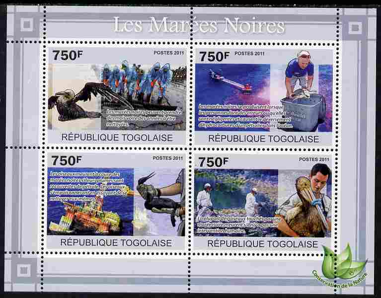 Togo 2011 Environment - Oil Spills - Animals & Birds perf sheetlet containing 4 values unmounted mint