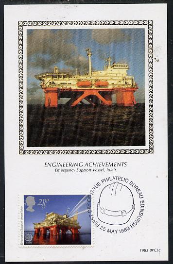 Great Britain 1983 Europa - Engineering Achievements 28p (Oil Rig) on Benham silk picture card with special first day cancel