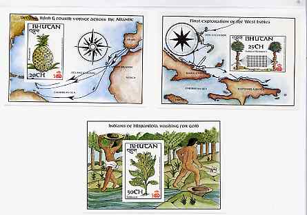 Bhutan 1992 500th Anniversary of Discovery of America by Columbus set of 3 imperf m/sheet essays mounted in Folder entitled 'Your Proofs from the House of Questa', without endorsements as this,set was never issued, ex Government a……Details Below