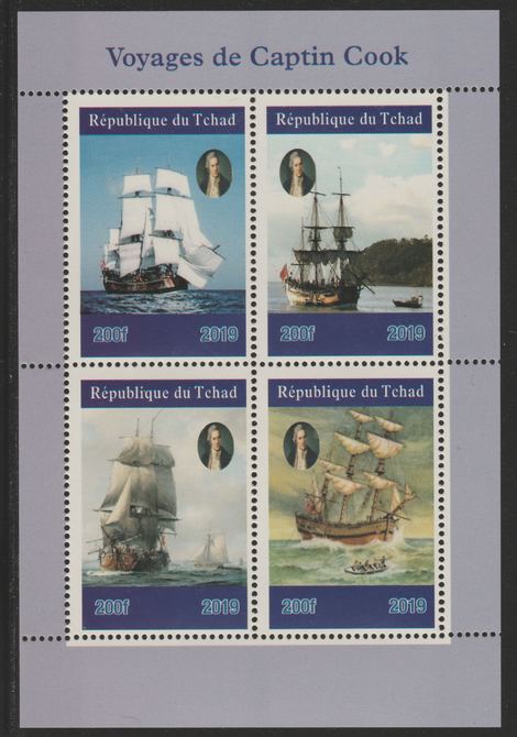 Chad 2019 Voyages of Captain Cook perf sheetlet containing 4 values unmounted mint. Note this item is privately produced and is offered purely on its thematic appeal, it has no postal validity