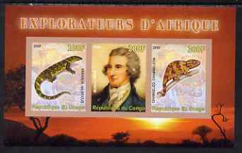 Congo 2008 Explorers of Africa #4 - Mungo Park imperf sheetlet containing 3 values unmounted mint