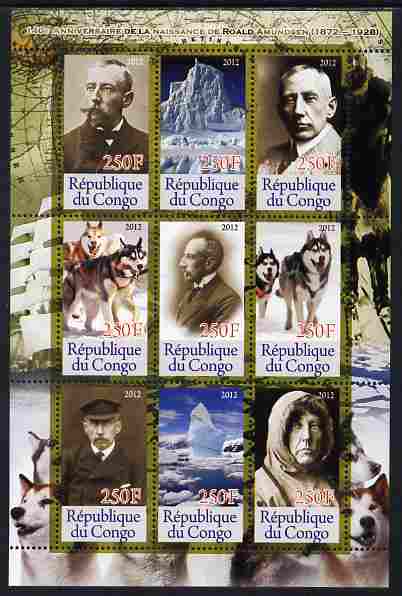 Congo 2012 Roald Amundsen perf sheetlet containing 9 values unmounted mint