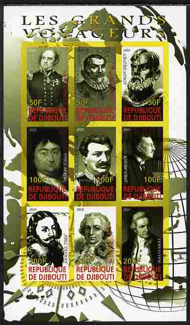 Djibouti 2010 Great Explorers #1 imperf sheetlet containing 9 values unmounted mint