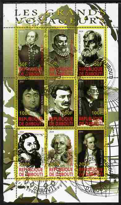 Djibouti 2010 Great Explorers #1 perf sheetlet containing 9 values fine cto used