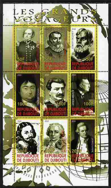 Djibouti 2010 Great Explorers #1 perf sheetlet containing 9 values unmounted mint