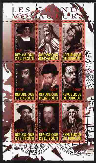 Djibouti 2010 Great Explorers #3 perf sheetlet containing 9 values fine cto used