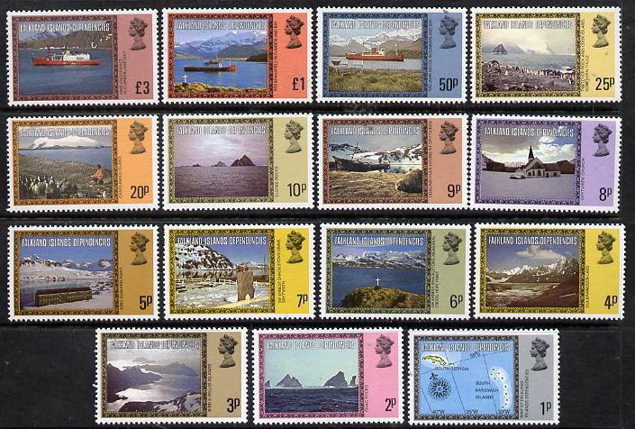 Falkland Islands Dependencies 1980-84 Island Scenes definitive set complete 15 values,1p to £3 (without imprint dates) unmounted mint SG 74A-88A