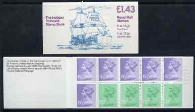 Great Britain 1982 Holiday Postcard Book (The Golden Hinde) £1.43 booklet complete with selvedge at left SG FN3A