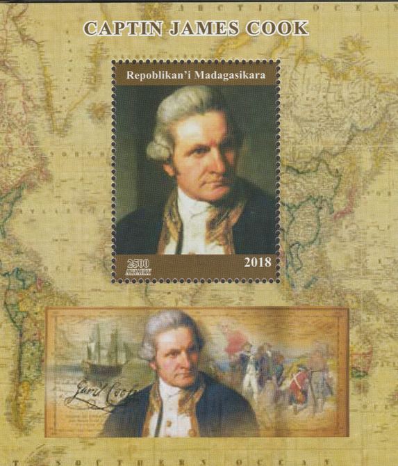 Madagascar 2018 Capt James Cook perf souvenir sheet unmounted mint. Note this item is privately produced and is offered purely on its thematic appeal.
