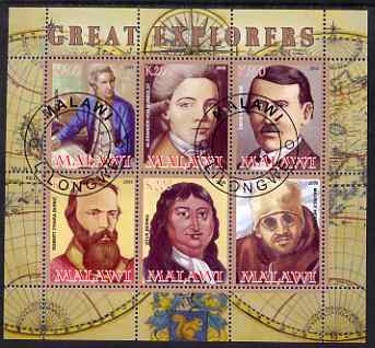 Malawi 2008 Great Explorers #2 perf sheetlet containing 6 values fine cto used