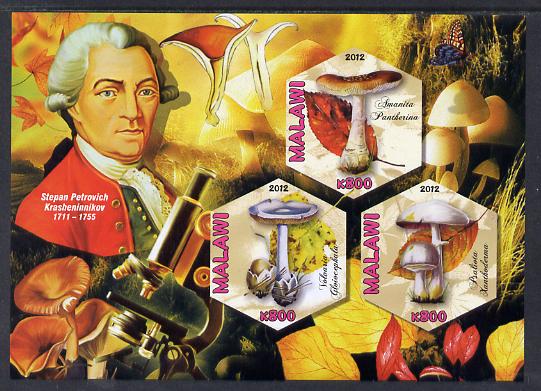 Malawi 2012 Fungi & Mycologists - Stepan Petrovich imperf sheetlet containing 3 hexagonal shaped values unmounted mint