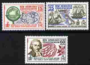 New Hebrides - English 1968 Bicentenary of Bougainville's Visit perf set of 3 unmounted mint, SG 130-2