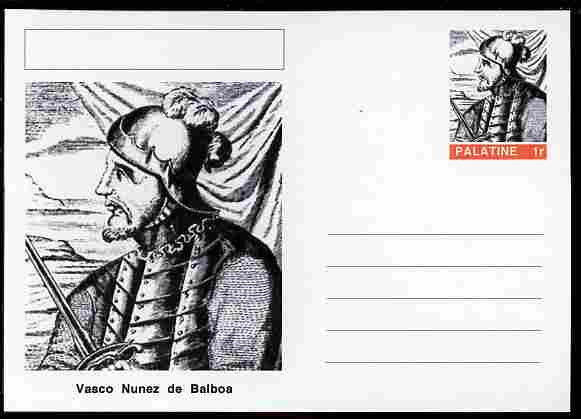 Palatine (Fantasy) Personalities - Vasco Nunez de Balboa (explorer) postal stationery card unused and fine