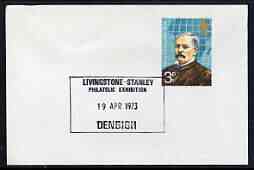 Postmark - Great Britain 1973 cover bearing illustrated cancellation for Livingstone-Stanley Philatelic Exhibition, Denbigh