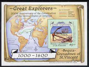 St Vincent - Bequia 1988 Explorers $5 m/sheet (Map & Anchor) imperf opt'd SPECIMEN unmounted mint.
