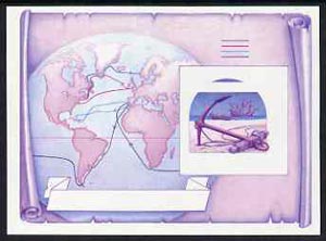 St Vincent - Bequia 1988 Explorers $5 m/sheet (Map & Anchor) imperf progressive proof in magenta & blue only unmounted mint.