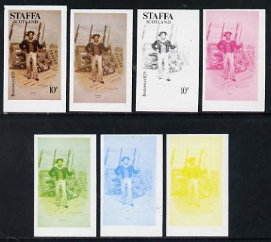 Staffa 1977 Sailor's' Uniforms 10p (Boatswain1829) set of 7 imperf progressive colour proofs comprising the 4 individual colours plus 2, 3 and all 4-colour composites unmounted mint