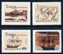 Tonga 1981 Maurelle's Discovery Anniversary self-adhesive set of 4 opt'd SPECIMEN unmounted mint as SG 793-96