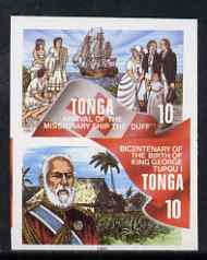 Tonga 1997 Missionaries & Tongans 10s se-tenant with King George 10s, imperf proof pair in issued colours reduced to 65% size