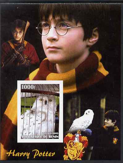 Benin 2003 Owls perf m/sheet with Harry Potter in background, unmounted mint. Note this item is privately produced and is offered purely on its thematic appeal