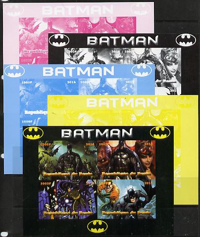 Benin 2014 Batman (Comic Strip) sheetlet containing 4 values - the set of 5 imperf progressive proofs comprising the 4 individual colours plus all 4-colour composite, unmounted mint