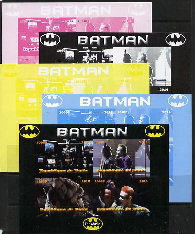 Benin 2014 Batman (Movie) sheetlet containing 4 values - the set of 5 imperf progressive proofs comprising the 4 individual colours plus all 4-colour composite, unmounted mint