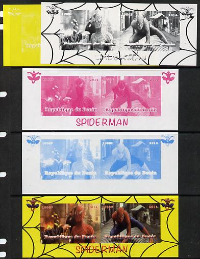 Benin 2014 Spiderman (Movie) sheetlet containing 2 values - the set of 5 imperf progressive proofs comprising the 4 individual colours plus all 4-colour composite, unmounted mint