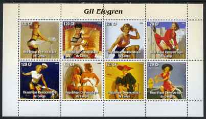 Congo 2004 Pin-Up Art by Gil Elvgren #1 perf sheetlet containing 8 values, unmounted mint