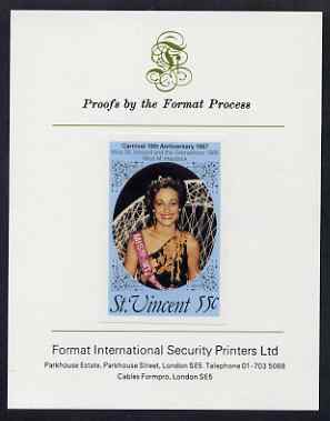 St Vincent 1987 10th Anniversary of Carnival 55c (Beauty Queen) imperf proof mounted on Format International proof card as SG SG 1068var