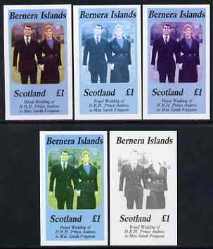 Bernera 1986 Royal Wedding imperf souvenir sheet (£1 value) the set of 5 progressive proofs, comprising single colour, 2-colour, two x 3-colour combinations plus completed design (5 proofs) unmounted mint