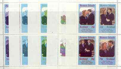 Bernera 1986 Royal Wedding perf sheetlet of 4, the set of 5 progressive proofs, comprising single colour, 2-colour, two x 3-colour combinations plus completed design (20 proofs) unmounted mint