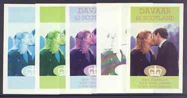 Davaar Island 1986 Royal Wedding imperf deluxe sheet (£2 value) the set of 5 progressive proofs, comprising single colour, 2-colour, two x 3-colour combinations plus completed design (5 proofs) unmounted mint