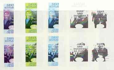 Davaar Island 1986 Royal Wedding imperf sheetlet of 4 opt'd Duke & Duchess of York in silver, the set of 4 progressive proofs, comprising single colour, 2-colour and two x 3-colour combinations each with opt. (16 proofs) unmounted mint