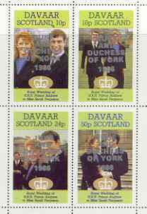 Davaar Island 1986 Royal Wedding perf sheetlet of 4 opt'd Duke & Duchess of York in silver, unmounted mint