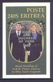 Eritrea 1986 Royal Wedding imperf deluxe sheet (240s) opt'd Duke & Duchess of York in silver, unmounted mint
