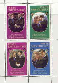 Eritrea 1986 Royal Wedding perf sheetlet of 4 opt'd Duke & Duchess of York in gold, unmounted mint
