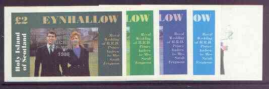 Eynhallow 1986 Royal Wedding imperf deluxe sheet (£2 value) opt'd Duke & Duchess of York in silver, the set of 5 progressive proofs, comprising single colour, 2-colour, two x 3-colour combinations plus completed design each with opt. (5 proofs) unmounted mint